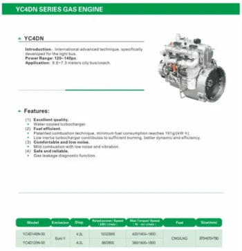 Yuchai YC4DN Series 4-Cyl Gas Engine for Buses – High Efficiency & PowerRead more
